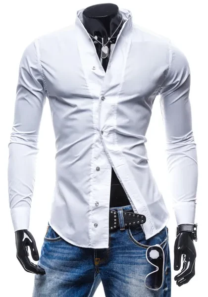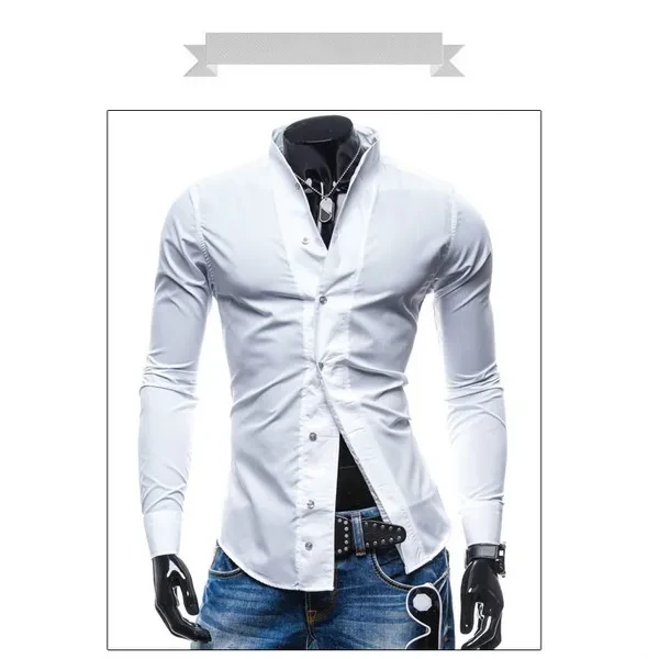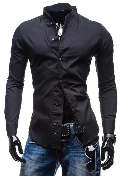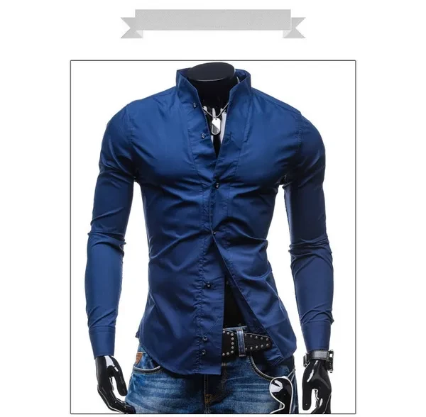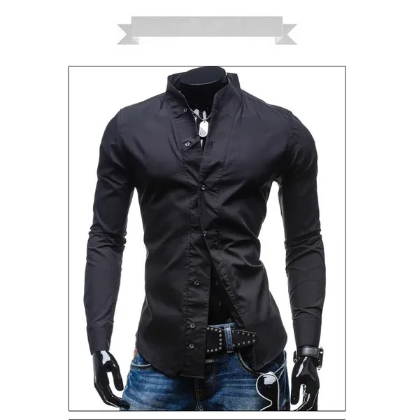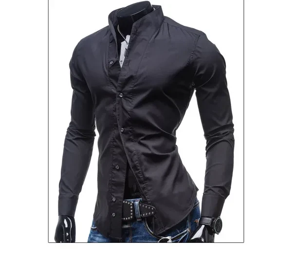 Please refer to the attached picture for the detailed measurement table. Pattern: solid Color: white, black, navy Product Category: Shirt For the crowd: youth Size: M, L, XL, 2XL Version: Slim Category: Youth Pop Collar type: stand collar Style: cardigan Thickness: General Applicable scene: leisure Main fabric composition: Cotton Applicable gender: Male Applicable age range: Adult Sleeve length: long sleeve Suitable season: spring and autumn Style: Korean Error range: 1-3cm
