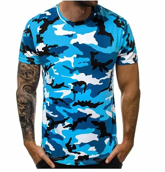 New Men's Fashion Summer T-Shirt Short Sleeve Shirt with Motif Round Neck Slim Camouflage T-shrit