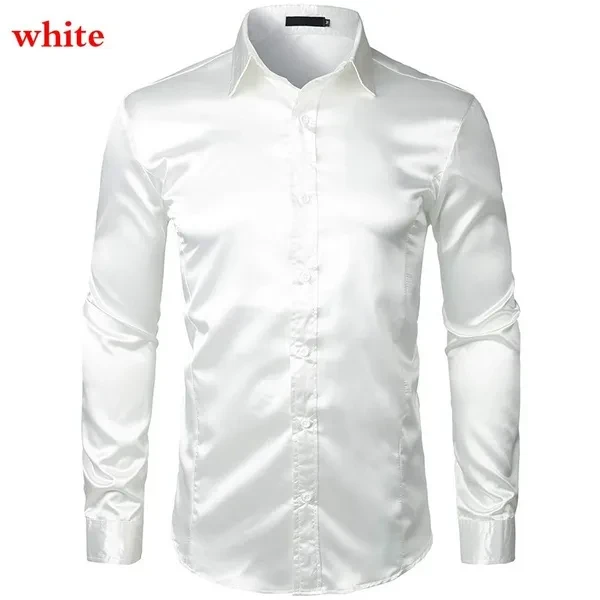 1.Mild Hand wash(Washed with cold water)/Do not bleach/Low iron if necessary 2.Satin Like Feel Silk Fabric/Soft decent Slim Fit/Bright Pure Color/Spread Collar 3.Slim Fit Type/US/EU Size,When you place the order please check the size chart for better fit 4.Disco/Party/Show/Stage/Suitable for a variety of occasions/Perfect for Occasions such as Prom,Christmas Eve,School Dances, Graduation, Choir performances,Musical Band Performances,Communion, Weddings, Bar Mitzvahs and Quinceanera's 5.Color Disclaimer : Due to monitor settings, monitor pixel definitions, we cannot guarantee that the color you see on your screen as an exact color of the product. We strive to make our colors as accurate as possible. However, colors are approximations of actual colors