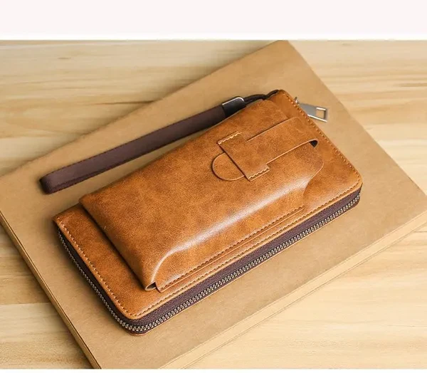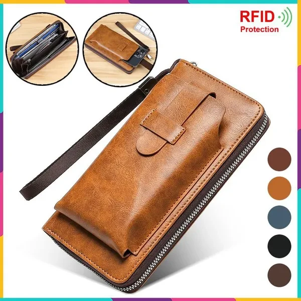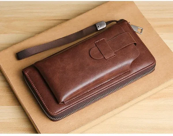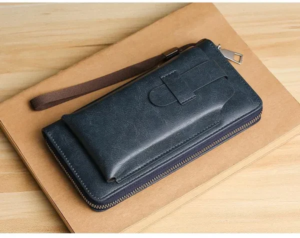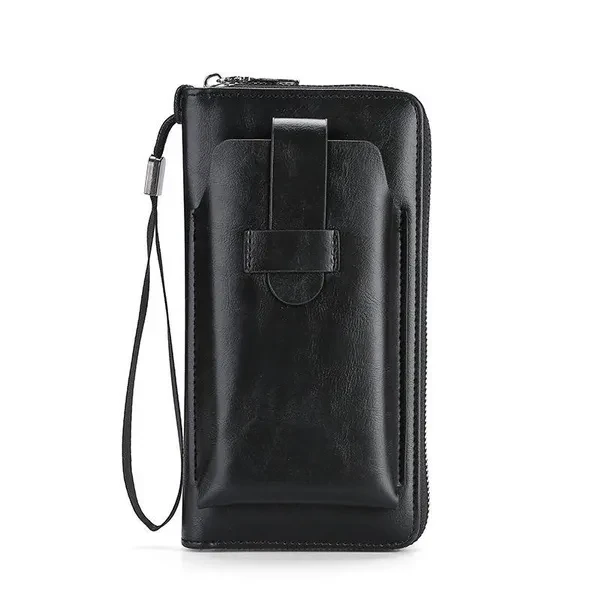 New Men's Wallet Long Leather Wallet Large Capacity Multifunctional Wallet Men's Business Zipper Mobile Phone Bag
