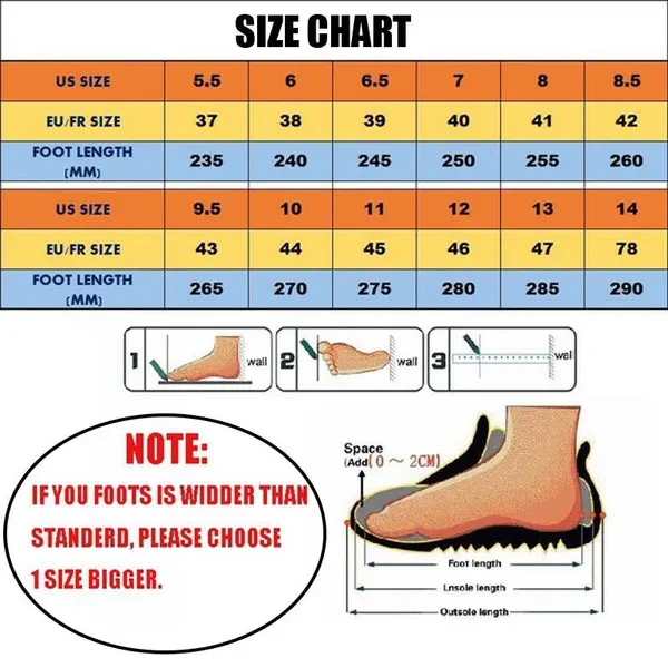 New Running Shoes for Men Breathable Sports Shoes Light Weight Fashion Summer Sneakers Plus Size 38-46 Man Size chart EUR/FR Size 38 (US 6.0 ), Suit for foot 24.0cm EUR/FR Size 39 (US 6.5 ), Suit for foot 24.5cm EUR/FR Size 40 (US 7.0 ), Suit for foot 25.0cm EUR/FR Size 41 (US 8.0 ), Suit for foot 25.5cm EUR/FR Size 42 (US 8.5 ), Suit for foot 26.0cm EUR/FR Size 43 (US 9.5 ), Suit for foot 26.5cm EUR/FR Size 44 (US 10 ), Suit for foot 27.0cm EUR/FR Size 45 (US 11 ), Suit for foot 27.5cm EUR/FR Size 46 (US 12 ), Suit for foot 28.0cm EUR/FR Size 47 (US 13 ), Suit for foot 28.5cm EUR/FR Size 48 (US 14 ), Suit for foot 29.0cm Why buy from us? Worldwide fast shipping! Free tracking number! Quickly and satisfying communication! Unique high-quality goods! Best prices! Please reference our size picture carefully! Please allow 1-3mm error! Due to computer monitor, may exist some color error, please do not mind!