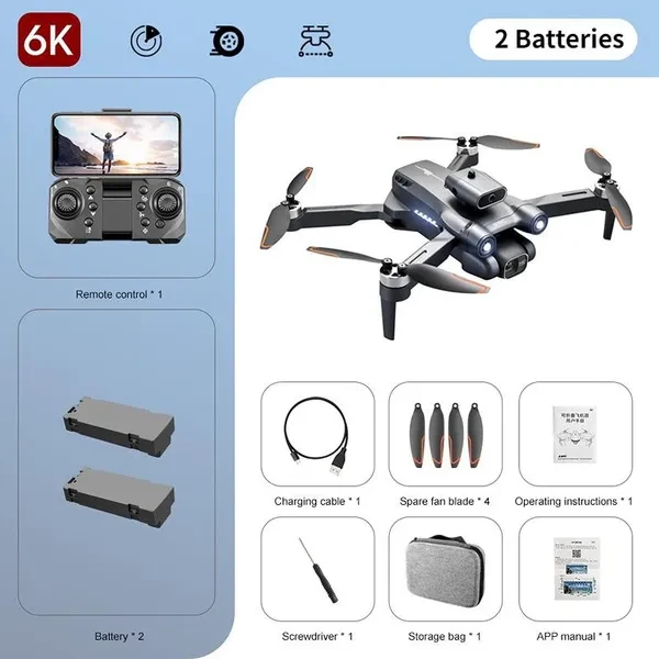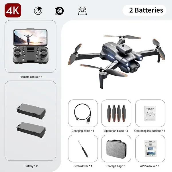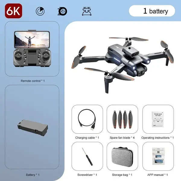 1. The front lens is placed with wide-angle 4/6K high-definition WIFI, the bottom high-definition lens with optical flow can switch the camera angle, the servo pan tilt is designed to increase stability, and the EIS electronic anti shake is added to make the photo line clearer