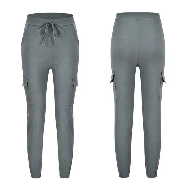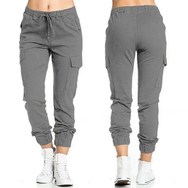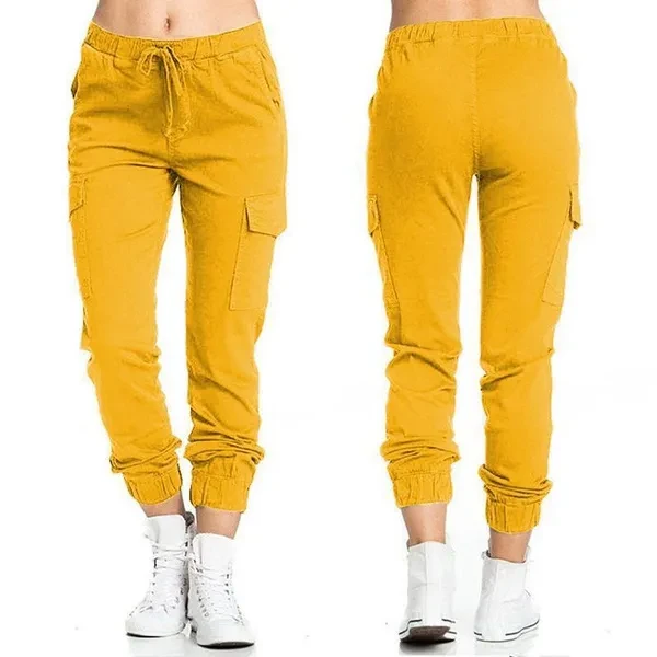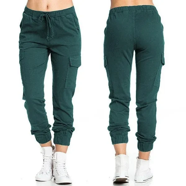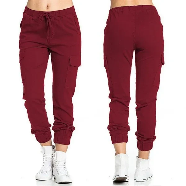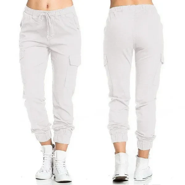New Solid Jogger Women's Cargo Pants Multi-Pocket Drawstring Elastic Waist Women Sports Pants Streetwear Casual Long Pants