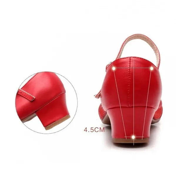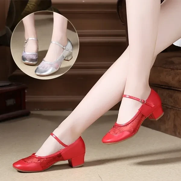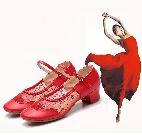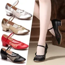 Features: Wearable, anti-skid, light, support, balance Applicable gender: Female Use: Modern Dance Vamp material: net cloth Material: leather sole Upper height: low support Toe shape: round Heel shape: square heel Lining material: breathable Opening depth: shallow mouth Heel height: 3.5 Style: Sports Processing method: frosted Style: single shoes Season: Summer How to wear: hasp Applicable scene: Movement Color: Red gauze, gold silver black gauze, gauze, gauze Size: 34,35,36,37,38,39,40,41,42 Size Details: EU Size 34 = Foot length 220 mm EU Size 35 = Foot length 225 mm EU Size 36 = Foot length 230 mm EU Size 37 = Foot length 235 mm EU Size 38 = Foot length 240 mm EU Size 39 = Foot length 245 mm EU Size 40 = Foot length 250 mm EU Size 41 = Foot length 255 mm EU Size 42 = Foot length 259 mm Package includes: 1 pair of shoes
