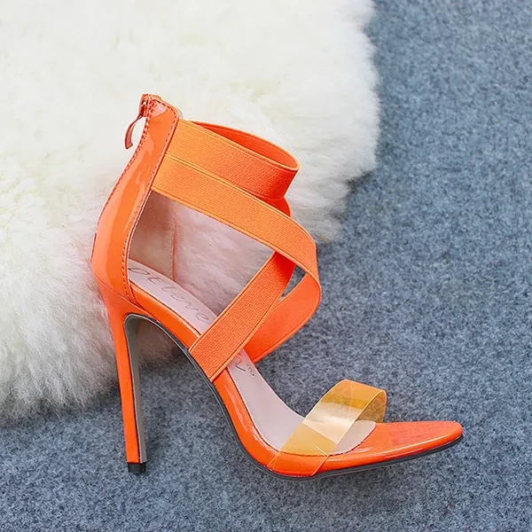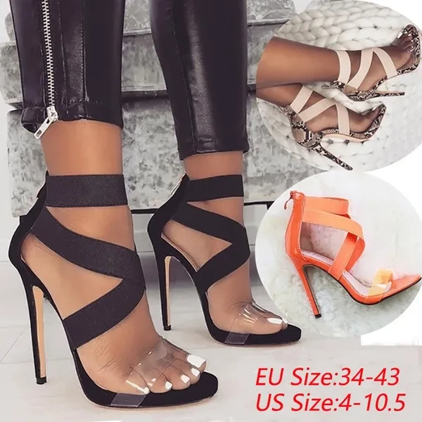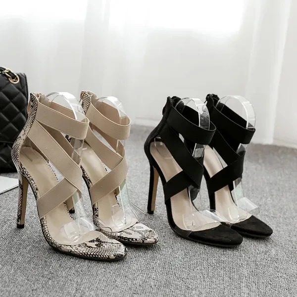 New Women Fashion Snake Black Plastic High Heeled Sandals Party Evening Heels Roman Gladiator Sandals Black Shoes