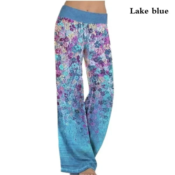 New Women Printed Yoga Wide Leg Pants Summer Casual Bohemian Loose Pants