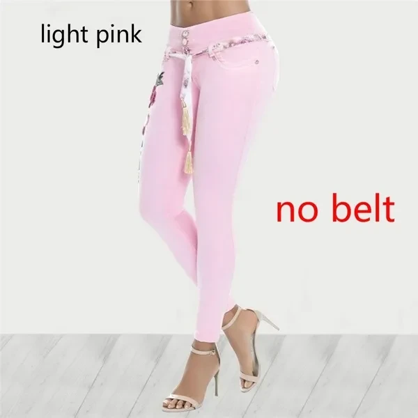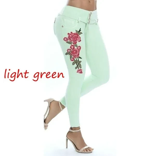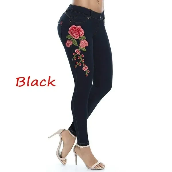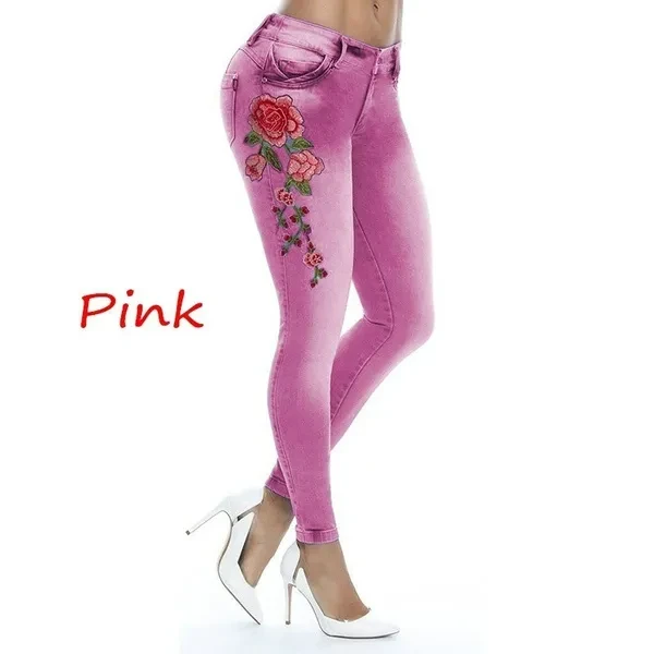 New Women's Fashion Waistband Floral Print Jeans Skinny Long Pants