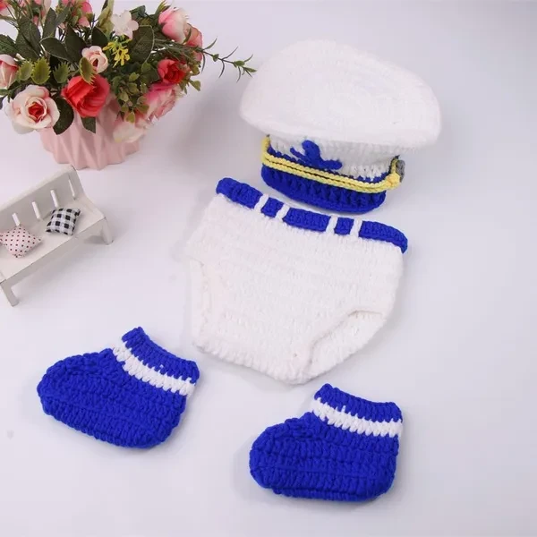 <p>Features: Police officer-inspired newborn photography costume set includes a crocheted hat, shoes and diaper, in bold white, yellow and blue color. Made with soft, breathable materials, these lovely baby shoes are designed to keep your little kid cosy and comfortable during their first photo shooting. The handmade officer outfit for newborns is perfect for parents who want to capture good memory of their little infant as they on their journey through life. Whether you're a law enforcement officer yourself or just looking for a unique way to celebrates your new arrival, this -themed baby costume set is sure to delight both parents and babies alike! Great shower gift for mom-to-be, friend who will give birth to baby, also nice photography props used for photoghrpahy studios. Specifications: Material: Knitting Woolen Yarn Size: As Pictures Shown Package Includes: 1 Set Newborn Photography Clothing note: Please allow 1-2cm errors due to manual measurement. Please allow for slight color differences due to different display resolution. </p>