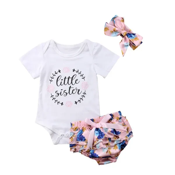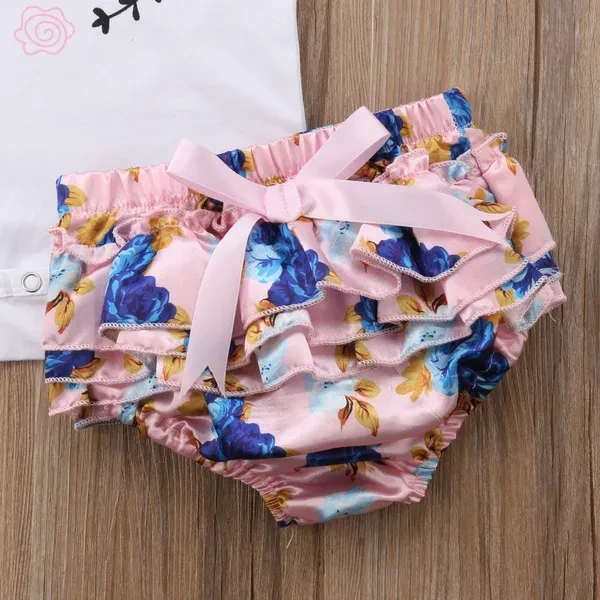 Newborn Infant Baby Floral Girl Top Romper Jumpsuit + Short Pants Headband Outfit Set Clothes