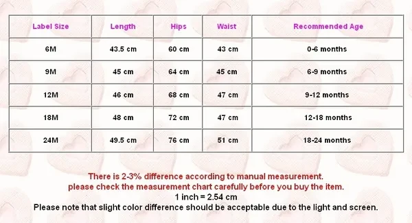 100% Brand New and high quality Cute Baby Girls Lace Romper Fashion design Cute Size:6 9 12 18 24 Pattern:Solid Color:As the picture show Material:Lace & Cotton Size Chart: Attention plz: If your kid is chubby, we recomend choosing a larger size, thanks. Please note that slight color difference should be acceptable due to the light and screen. Package Icluded: 1x baby girl lace romper