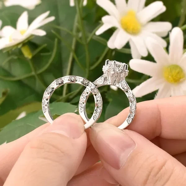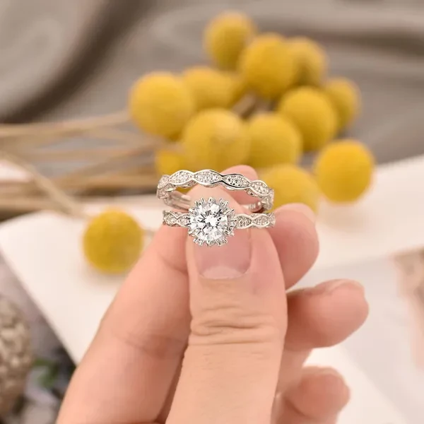 Newshe 925 Sterling Silver 2Pcs Engagement Wedding Ring Set AAAAA CZ Bridal Sets Vintage Jewelry for Women JR4891