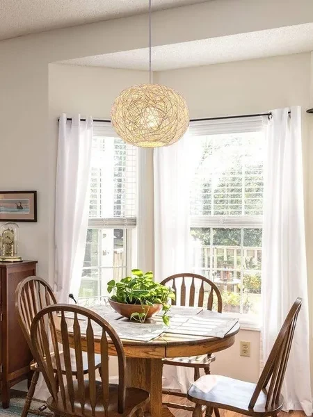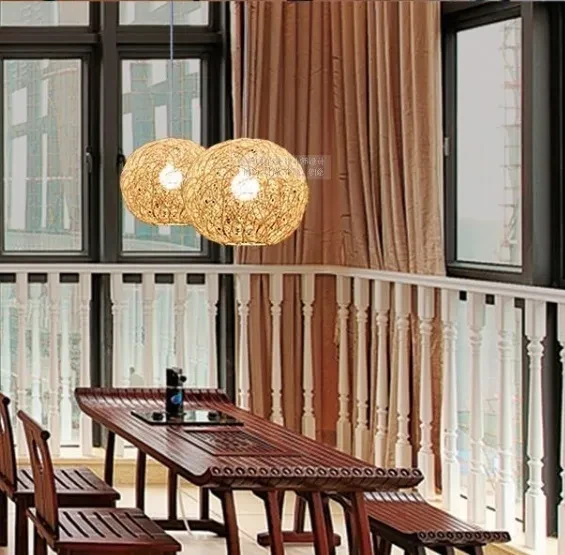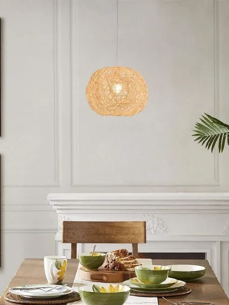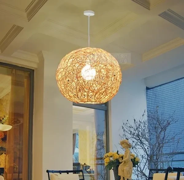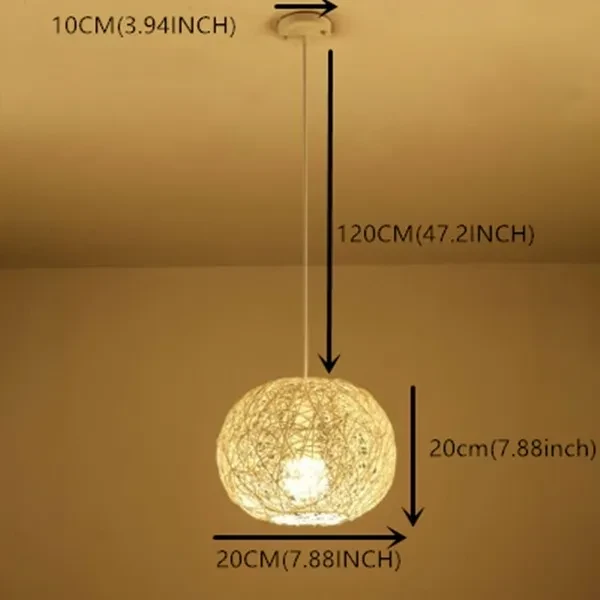 Nordic Minimalist Light Fixtures Rustic Lighting Rattan Lamp LED Hanging Light Rattan Pendant Light for Villa Cottage Home Rattan Ball Light