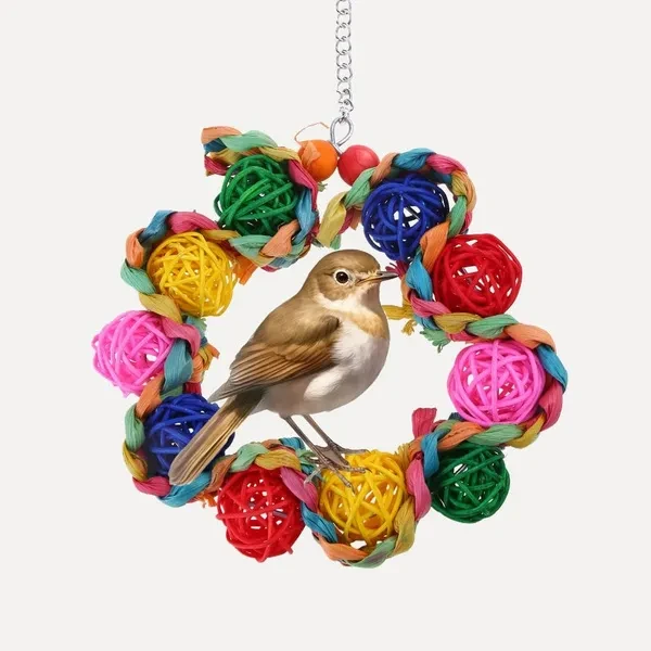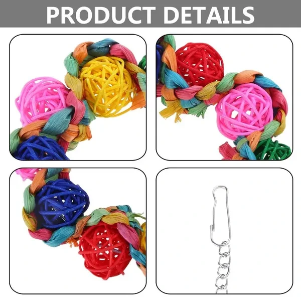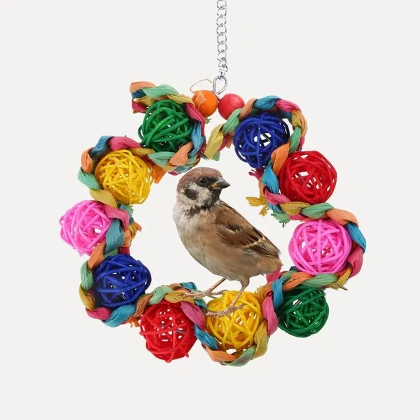 Pet Bird Tooth Chew Toy Natural Straw Beads Rattan for Cockatiel Conure