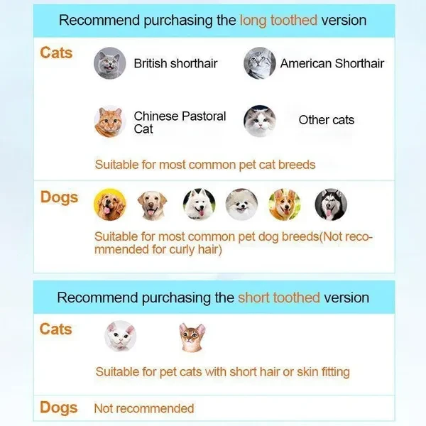 1.Name: Pet Beauty Comb 2.Color:Blue / Pink / White Package: Short Tooth Comb / Long Tooth Comb / Short Tooth Comb + Tissue / Long Tooth Comb + Tissue / Tissue (Big Size-100PCS)