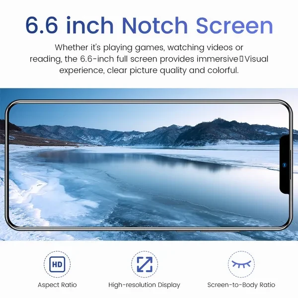 What’s in the Box: 1 x Smartphone(Note: It is not compatible with US direct phone, Sprint and Verizon operators!) 1 x Charger Adapter 1 x Date Cable 1 x User Manual Gifts in the Box: 1 x 128GB TF Card 1 x Earphones 1 x Phone Case 1 x Protection Film 1 x Ring Phone Holder Multi Function: Full screen, Face recognition,Screen finger print, Dual SIM, Wifi, GPS, Gravity Sensor, Alarm ,Calendar,Calculator,Audio recorder ,Video recorder, WAP/MMS/GPR, Image viewer,E-Book,World clock Languages: Multi-language support Specification Details: Model No.: i13 Pro+ CPU: MTK6875 Octa Core SIM/TF: 2 SIM Card Slots + 1 TF Card Slots (Maximum support extension 128GB) Screen: 6.6 Inch Notch Screen Resolution :1400*3200 Camera: Front Camera 16MP+ Rear Camera 32MP Memory: 12GB RAM+512GB ROM Battery: 4800mAh High Density Lithium-ion battery Unique Back Cover: Hot Bend 2.5D Plating Gradient Glass Back Cover. It is art, it is also technology! Net-Work: GSM850/900/1800/1900MHz, 3G: WCDMA850/2100MHz, 4G (Support 5G) Vibration:Support Multi Media: MP3/MP4/3GP/FM Radio/Bluetooth Tips: 1.The mobile phone does not support the telecom CDMA network (For example US Sprint and Verizon operators) 2.When the phone is completely out of power and automatically shuts down, you need to charge your phone for more than 10 minutes to boot. It is recommended to charge when the battery is less than 20% charged. 3.Available memory capacity is subject to preloaded software. 4.Product images and models, data, functions, performance, specifications, etc. are for reference only. For details, please refer to about phone. 5.The battery capacity is typical of the factory laboratory, the specific charging speed, the length of use and other data, the actual situation will be slightly different due to the power cord, power adapter, ambient temperature.