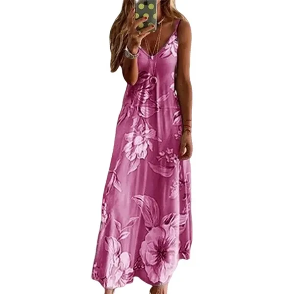 Plus size 3XL Women Summer Floral Maxi long sundress Hot Fashion Sleeveless V Neck Casual Dress Vocation Femme Beachwear Clothes