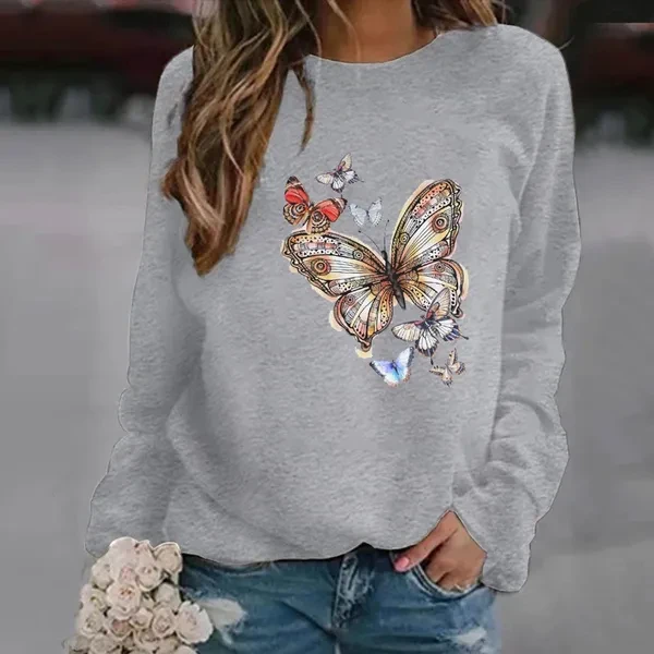 Popular Butterfly Printing Hoodless Sweatshirts For Women Autumn Winter Fashion Casual Solid Color Ladies O Neck Sweater