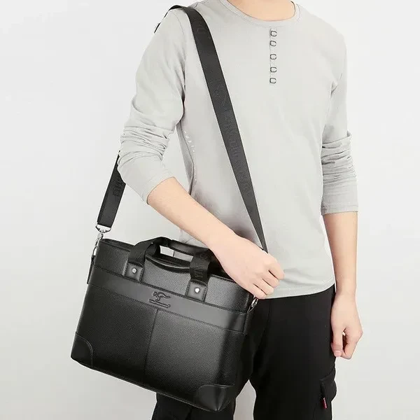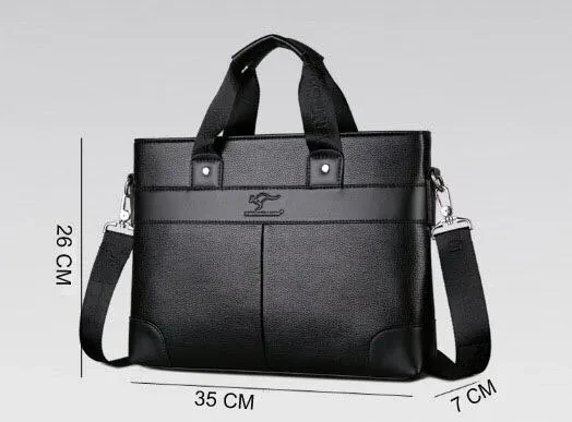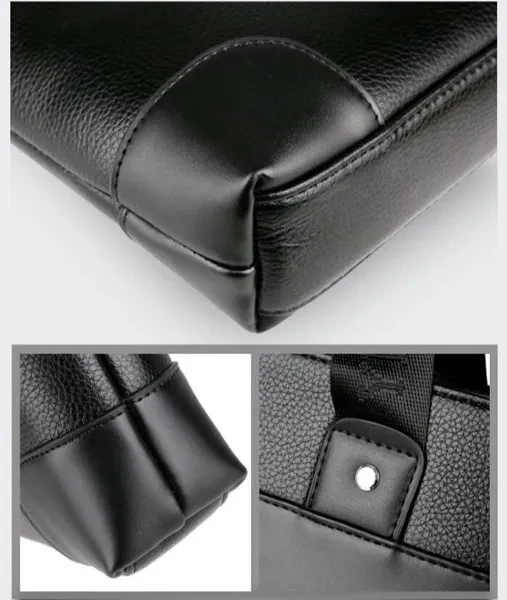 Material: High Quality PU leather Lining texture: polyester Style: Business Bag shape: cross section square Package internal structure: ID bag, mobile phone bag, zipper pocket, computer pocket Strap root number: single Lifting parts: telescopic handle Opening method: zipper Outer bag type: inner patch pocket Size: 26*37*7cm/ (suitable for 14 inch laptop) Color: Black/Brown Note: due to the different display and light, there may be a slight color difference