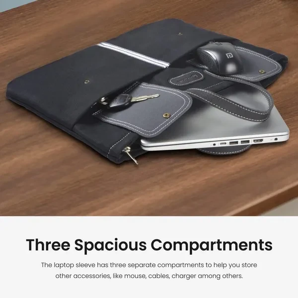 Portronics Encase 103 Laptop Bag for 15.6 Inch (39.6 cm) Laptops, Water Resistant Design, Professional Office Bag with Vegan PU Leather Handle, Briefcase Messenger Travel Bags for Men & Women (Black)