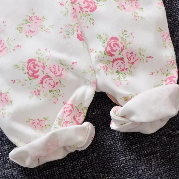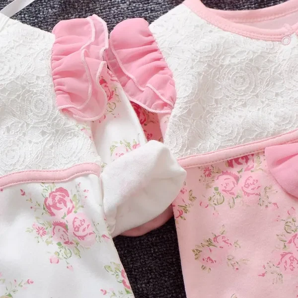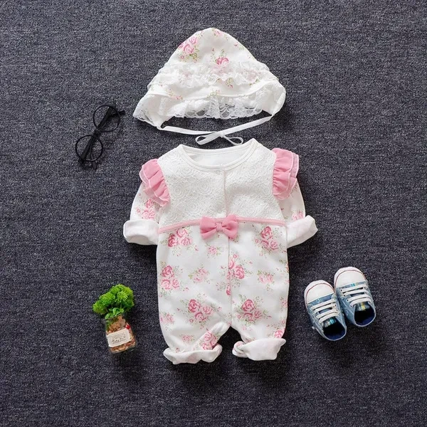 Princess Floral Lace Newborn Baby Girl Clothes Spring Autunm Long Sleeve Jumpsuits + Hats