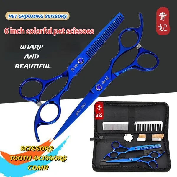 Product: Wool grooming set Uses: beauty, hairdressing, dog grooming. Cutting edge type: for details. Product category: flat scissors+dental scissors+comb Specification: 6 inches Number of teeth: 30 Weight: 250g(1 set) Material: steel Total length: 17 Quantity purchased: 1 set combination