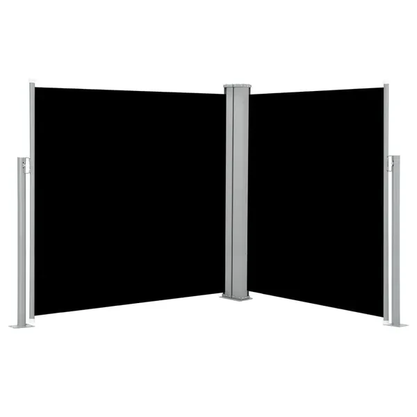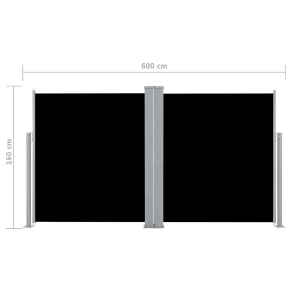 Our garden side awning, featuring a large screen, presents an effective way to deal with a constant wind and low-lying sun, while providing privacy. The simple yet stylish design makes it an ideal complement for your garden, patio, balcony, etc. The privacy screen has an automatic roll-back function and the width is adjustable to up to 600 cm. The outdoor screen is made of UV-proof, tear-resistant and water-resistant polyester fabric with a PU coating. Delivery also includes mounting accessories and 2 posts. Colour: Black Material: Fabric with PU coating + steel frame + aluminum roller Size: 160 x (0-600) cm (H x W) Retractable, double-sided screen Retracts automatically Including mounting accessories and 2 posts Fabric: Polyester: 100%