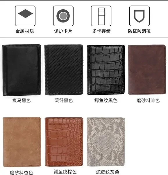 Rfid Blocking Business Men Small Wallet Multi-function Aluminum Card Holder Slim Wallet PU Leather Small Purse Wallets for Men Card Holder Wallets