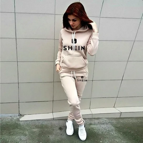Shein Fashion Women Printed Hoodie + Pants Set Casual Pants Tracksuits Sport Clothing Sets