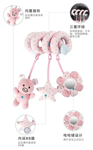 Spiral Stroller Toys Newborn Plush Hanging Baby Soft Rattle Sensory Toys Crib Mobile Bassinet for Babies Boys Girls Ideal Gifts