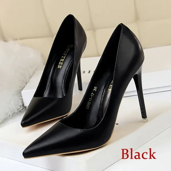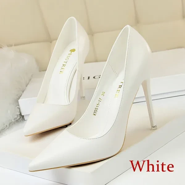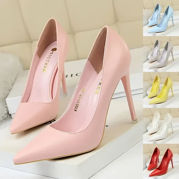 Production Category: High Heeled Shoes Inner Matrix: PU Leather Color: White, yellow, red, black, blue, gray, pink Size: 34, 35, 36, 37, 38, 39, 40 Heel Head: 10.5 cm Heel Shape: Stiletto Shoe Sole Access: Viscose Shoes Sole Matrix: Rubber Head Shape: Pointed Toe Upper Materiality: PU Leather
