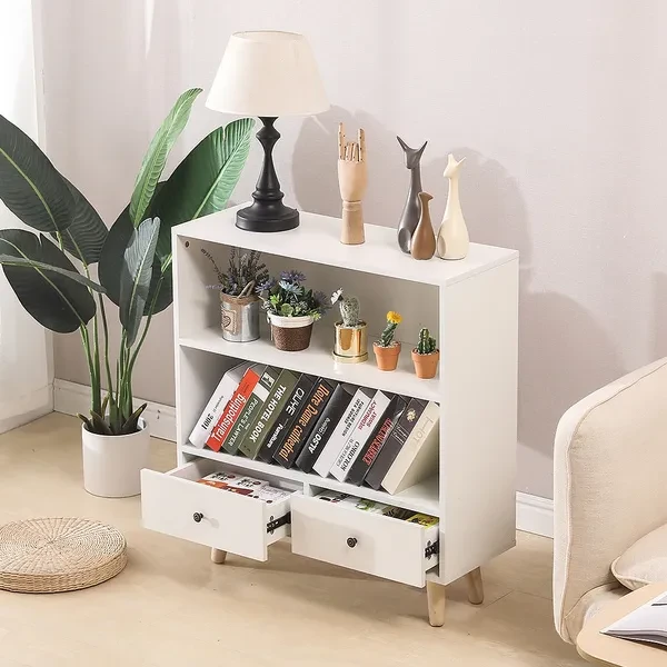 Scandinavian design invites you into your home with the EFFIE bookcase in white and gray wood. The Nordic clean lines of this bookcase will create a warm and cozy atmosphere in your living room! This superb bookcase, with neat finishes, is made of particle board You just have to take advantage of the storage spaces offered by this library and highlight your decorative items! Available in different colors on our online store. Package Included: 1XCabinet