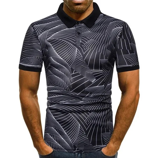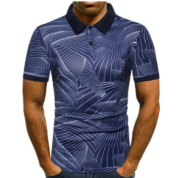 Summer Men's Fashion Polo Shirt Casual Striped Short-sleeved Business Shirt.
