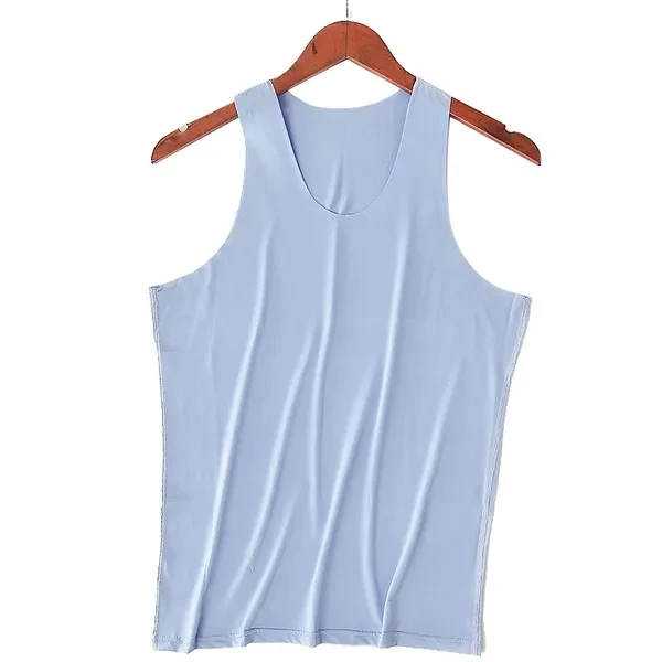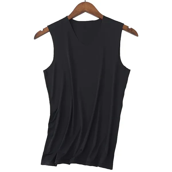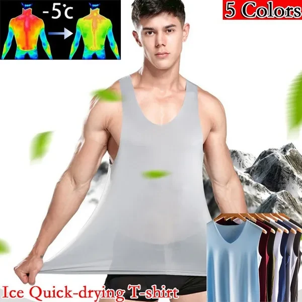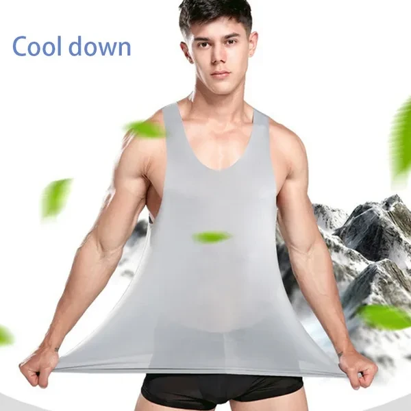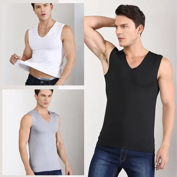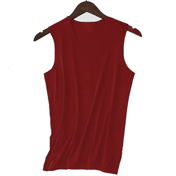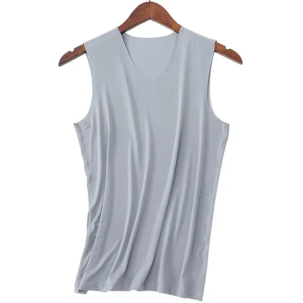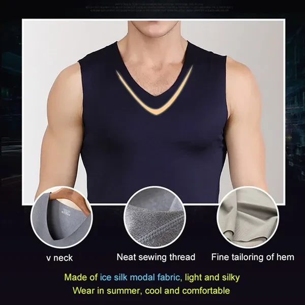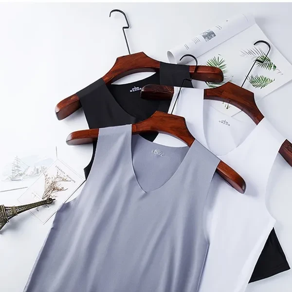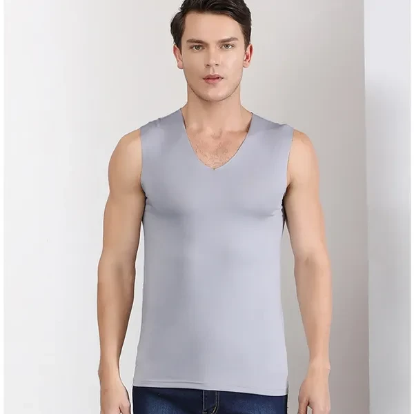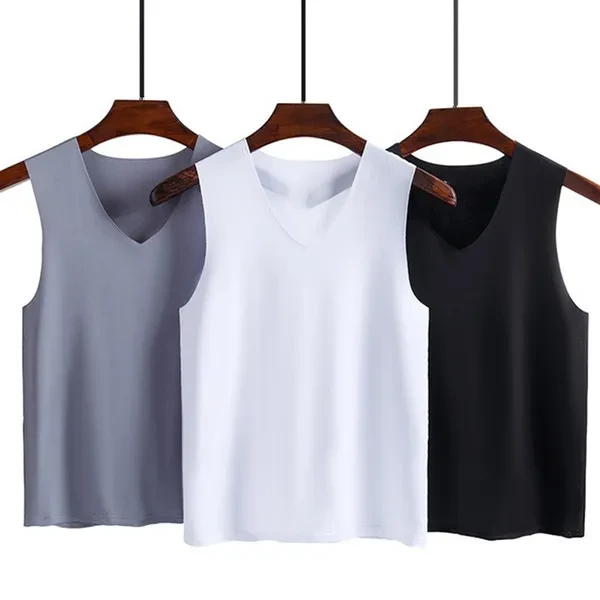 Summer Men's Ice Silk Seamless Vest V-collar Sports High Stretchy Under Shirts Breathable Smooth Stretchy Vest For Men