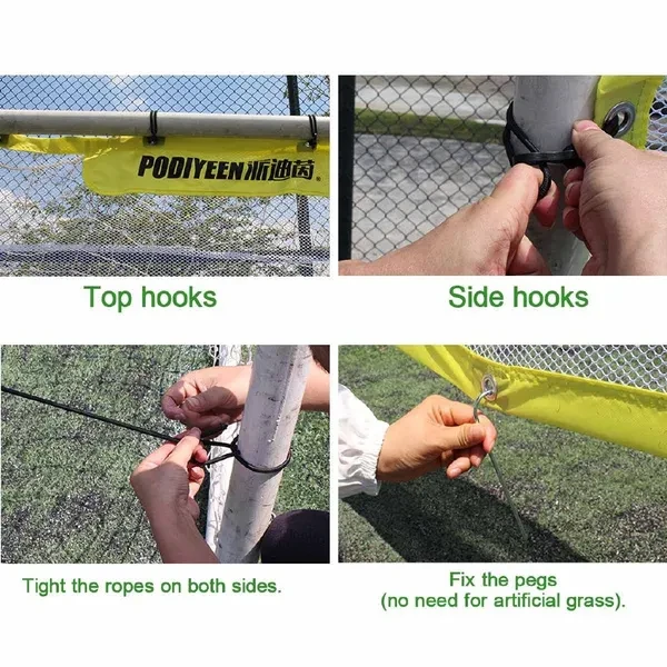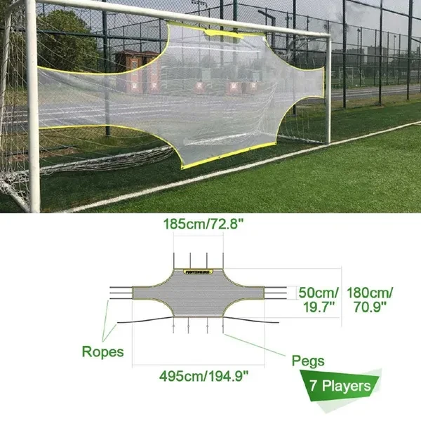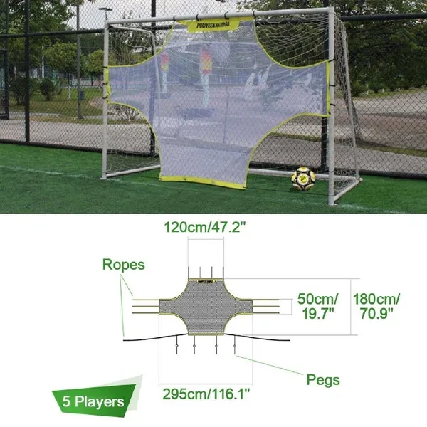 Specifications: Model: Futsal goals, 7-a-side goals, Full size goals Size: Futsal goals: 295x180cm/10x7ft 7-a-side goals: 495x180cm/17x7ft Full size goals: 720x230cm/24x8ft Features: FOUR ZONE TARGET SHEETS – These top of the range soccer goal targets have been designed to isolate the four main scoring zones of the goal. Aim for the top and bottom corners to improve your shooting accuracy. QUICK AND EASY TO ATTACH – Designed with high-strength loop and pin straps which wrap around the goal posts with ease, the professional soccer goal target sheets provide reliable security and shape retention. ALL-WEATHER MESH MATERIALS – Made from high quality Air Mesh materials, the pro soccer targets won’t lose their position during gusts of wind and downpours, providing year round shooting accuracy practice. SET-PIECE AND OPEN PLAY PRACTICE – Learn how to score from anywhere on the pitch with these versatile target sheets for soccer. Their design makes them suitable for free-kick, penalties, short range and long-range shooting. CHOOSE YOUR SIZE – These target goal comes in a range of 3 sizes, making them suitable for mini-soccer, futsal, junior and senior teams strikers training drills. Package Included: 1 x Football Training Goal & Accessories