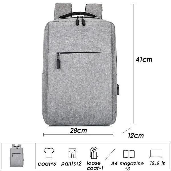Material: Polyester Size: width 28 cm * height 41 cm * thickness 12 cm Color: lue,Black,Grey,Wine Red Usage: business trips/weekend/casual/school/street/sport trips ?Packing list: 1pc backpack Kind tips: 1. Conversion: 1 inch = 2.54cm Items are all measured by hand and may vary by 1-3cm. Hope you understand, any help would be greatly appreciated. 2. Please note that due to lighting effects, monitor's brightness/contrast settings, etc., the color tone of the photos on the website may be slightly different from the actual product.
