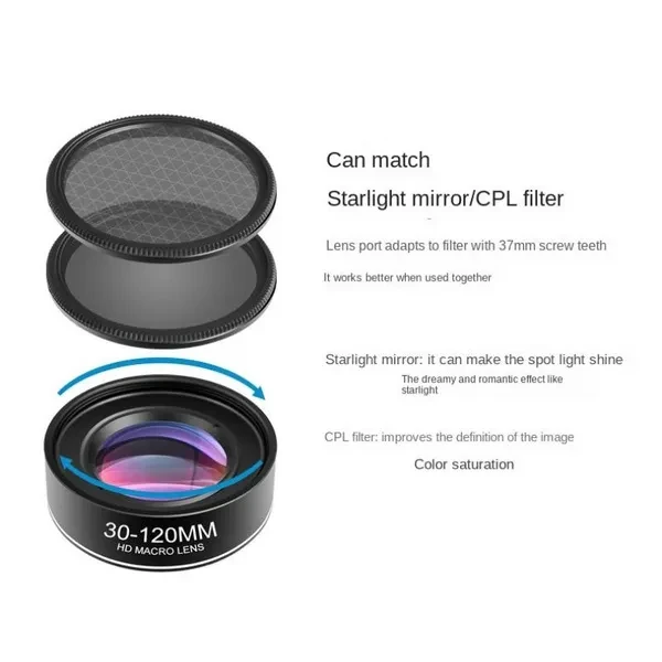 Ultra-clear Mobile Phone Macro Lens 30-120mm Telephoto Macro Optional Polarized Starlight Mobile Phone Universal Shooting Artifact
