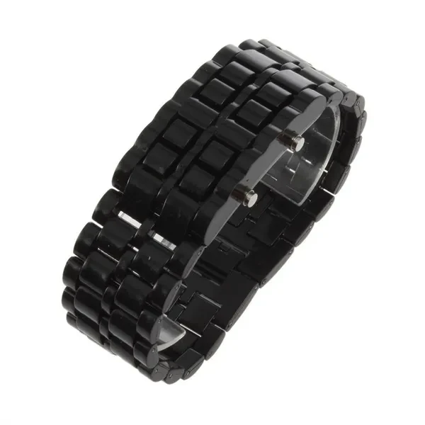 Unique Fashion Full Metal Digital Lava Wrist Watch Iron Metal RedBlue LED Samurai for Men Boy Sport Simple Watches