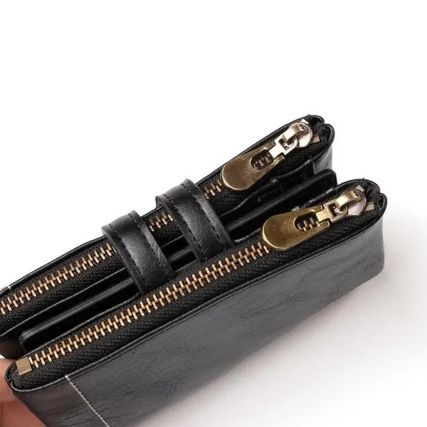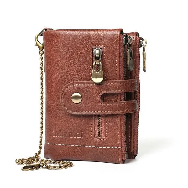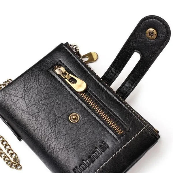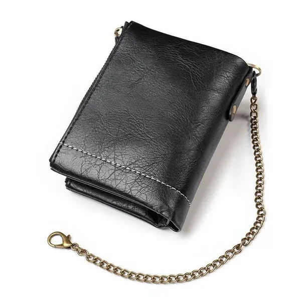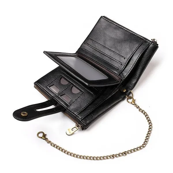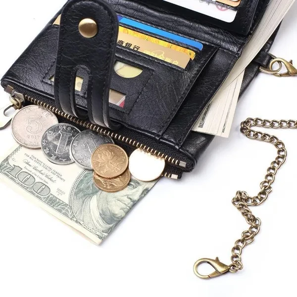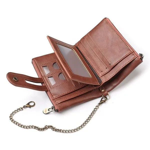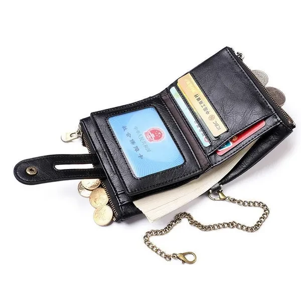 Vintage Pu Leather Men Wallet Zipper Hasp Credit Card Holder Purse with Metal Chain