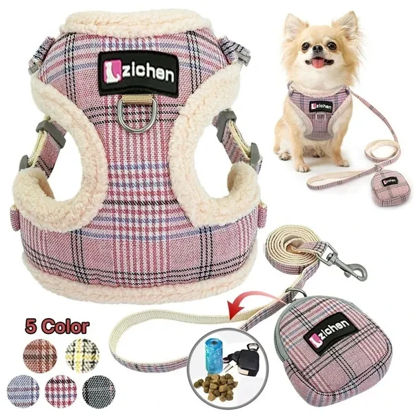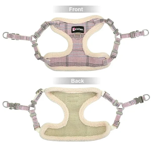 Material:Nylon+inner padded flannel Color: Gray,Pink,Blue,Coffee,Gray&Green soft for small medium large dogs,e.g.Chihuahua,Yorkie,Poodles,Pitbull,Bulldog,Labrador,Beagle,Boxer,etc. Soft flannel padded, very comfortable to wear, fit for autumn orwinter reduce the pressure when you dog is pulling Style:Mesh/Plush Package:1 Set in Package