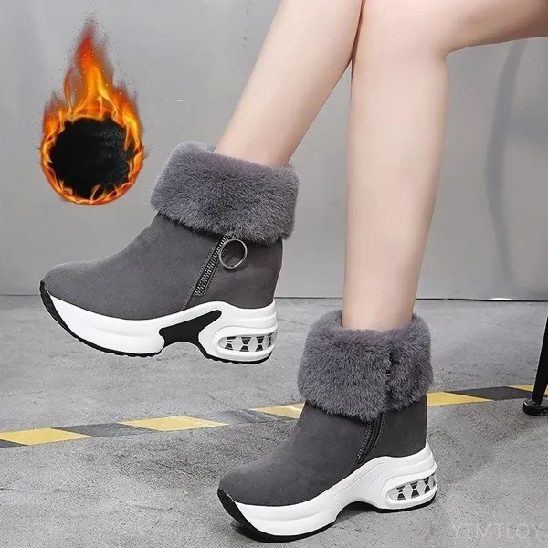 Women Fashion Ankle Boot Warm Plush Faux Fur Fleece Winter Shoes for Woman Boots High Heels Ladies Boot Women Snow Boots Winter Shoes Height Increasing Sneakers