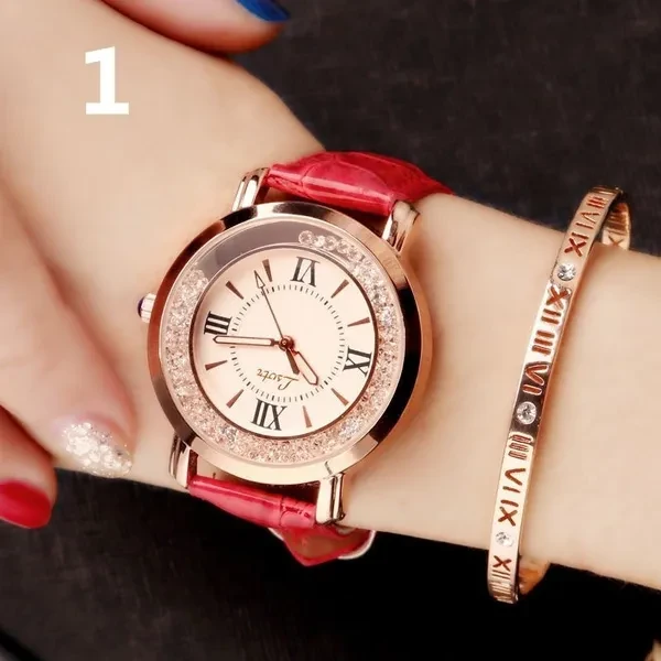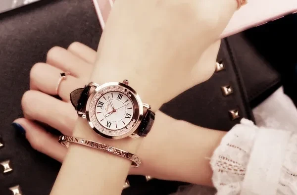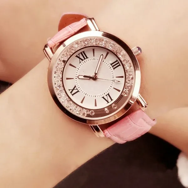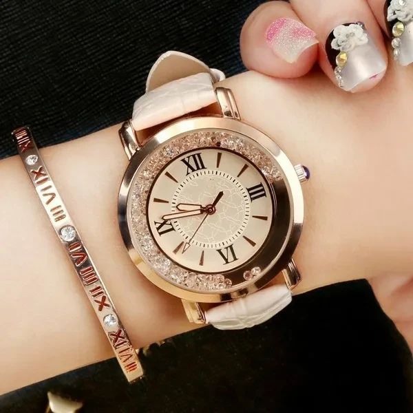Women Fashion christmas gift Luxury Leisure Auger Leather Aanlog Stainless Steel Quartz Watch