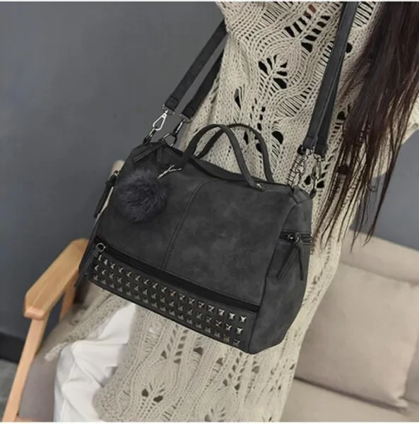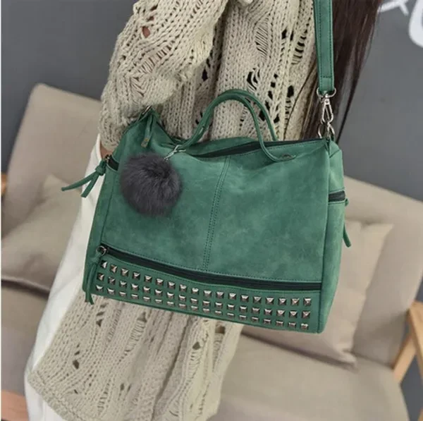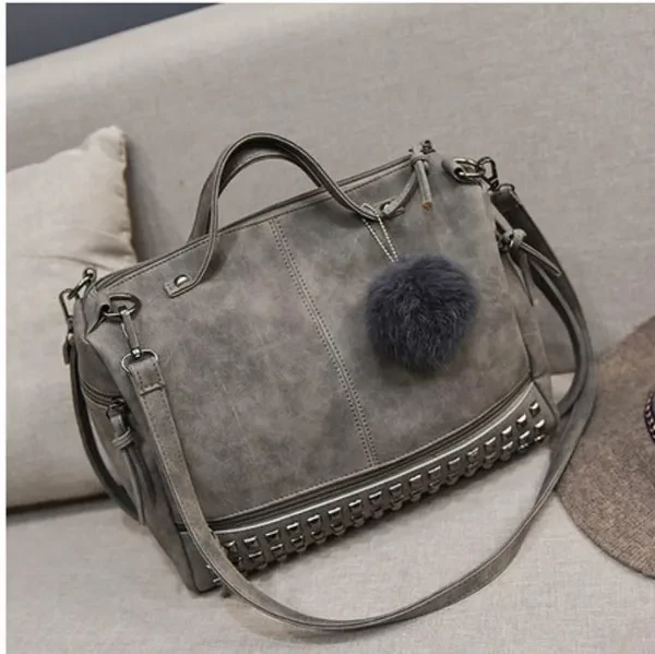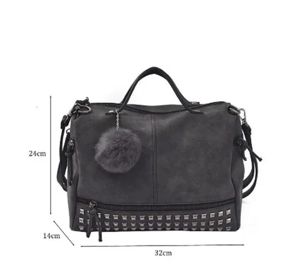 Women Fashion Pu Leather Studs Ball Pendant Shoulder Crossbody Handbag Casual Totes Bags
