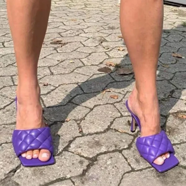 Women High Heel Sandals Summer Stilettos Slippers Fashion Ladies Design Square Toe Stiletto Heels Wedding Shoes