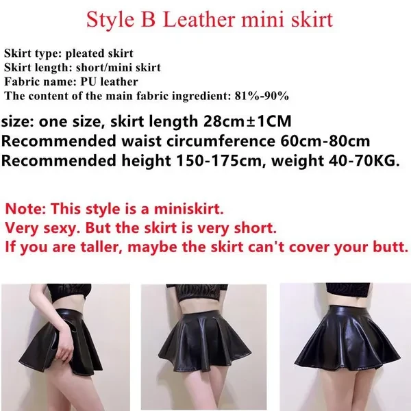 • Style: A,B,C Skirt category: skirt Skirt length: short/mini skirt Skirt type: as the picture shows Color: as the picture shows Fabric : On the details page size: one size Recommended waist circumference: 56-76cm Recommended height 150-175cm, weight 40-70KG. Package includes: 1PCS skirt Note: This style is a miniskirt. Very sexy. But the skirt is very short. If you are taller, maybe the skirt can't cover your butt. Please browse the product pictures carefully and read the product description. Compare sizes. Make sure it suits you. Then make a purchase! Thank you ~