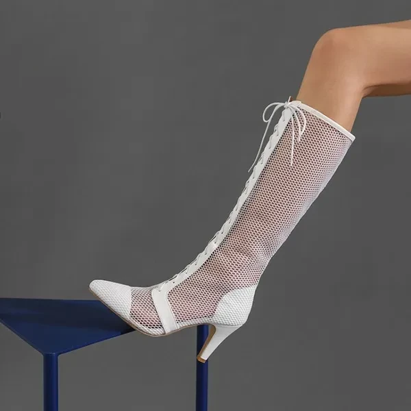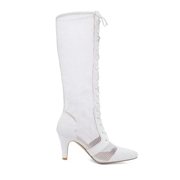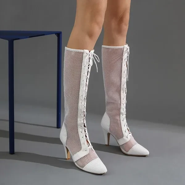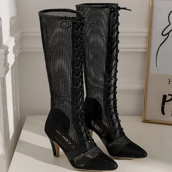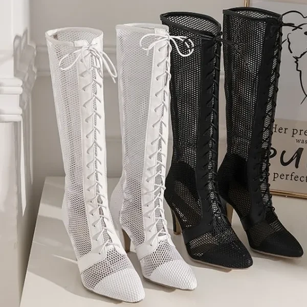 Women Hollow Out High Boots Lace Up Shoes Plus Size 34-46 Fashion Spring Autumn Winter Summer Shoe