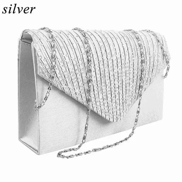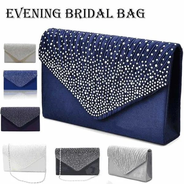 Fitment: This premium quality evening clutch is both elegant and stylish. Pleated satin fabric front with chic sparkling crystal rhinestones. Classic and elegant. Comes with eye-catchy and unforgettable design, stunning, functional and versatile, so it is also a must need accessory for usual dressing, Do not cost much to be a trendsetterhipster. Specification: Material: Satin + Rhinestone Use: Clutch Handbag / Shoulder Chain Bag / Purse/ Crossbody Bag / Makeup Bag Occasion: Wedding/Cocktail Party/Evening/Prom Dimensions (LxHxD): app.20.5 x 12.5 x 4.5cm / 20.5" x 12.5" x 4.5" Chain Length: app.120cm/47.24" Description: Interior features a back-wall multifunctional for you put small but important things. (Easily fit a cell phone, keys, wallet, compact mirror, lip gloss, perfume and a pack of gum.) Perfectly pleated satin fabric, front waved shinny stones studded bring chic feeling. Waved rhinestone design highlight your style and brings more convenience. High quality and Durable hardware buckle attached. Magnet snap closure, interior slip punch, comes with a detachable chain can be used as a cross body bag or a shoulder bag. Perfect for wedding, party, prom, ball and evening events. Best gifts for girlfriend, wife, lover and friends. Fit for all style of clothes and different shoes. Package Include: 1 x Satin Diamante Clutch Bag
