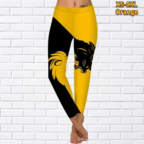 Women's Comfort Fitness Sports Pants Lady Breathable Slim Fit Yoga Pants 3D Two Tone Patchwork Lion Print Leggings Plus Size XS-8XL
