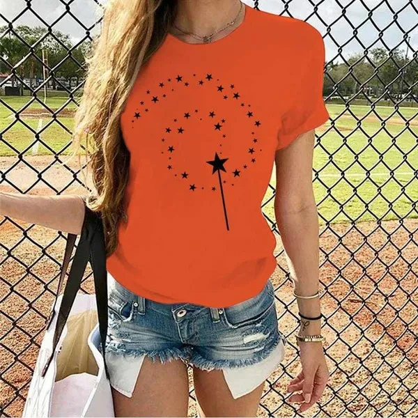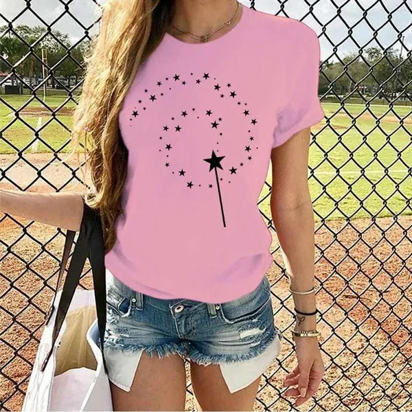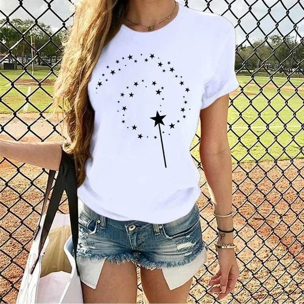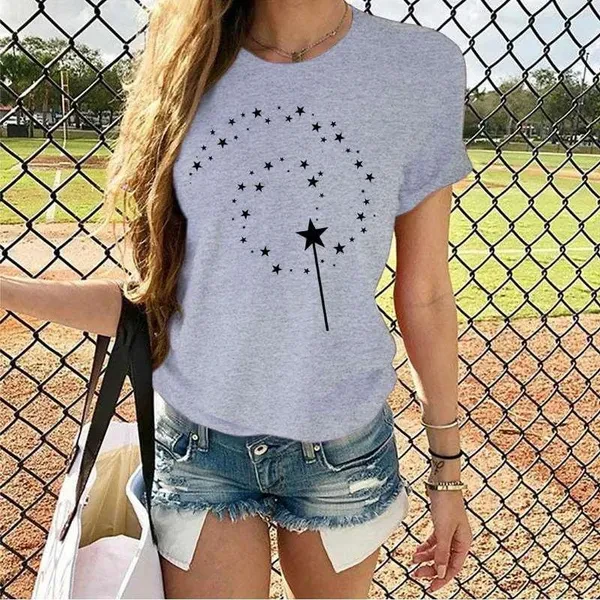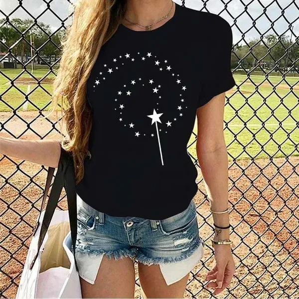 Women's Fashion Printed Magic Stars Print T-shirts Summer Casual Loose Round Neck Creative Personalized T-shirts