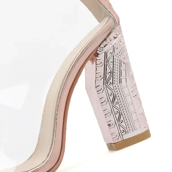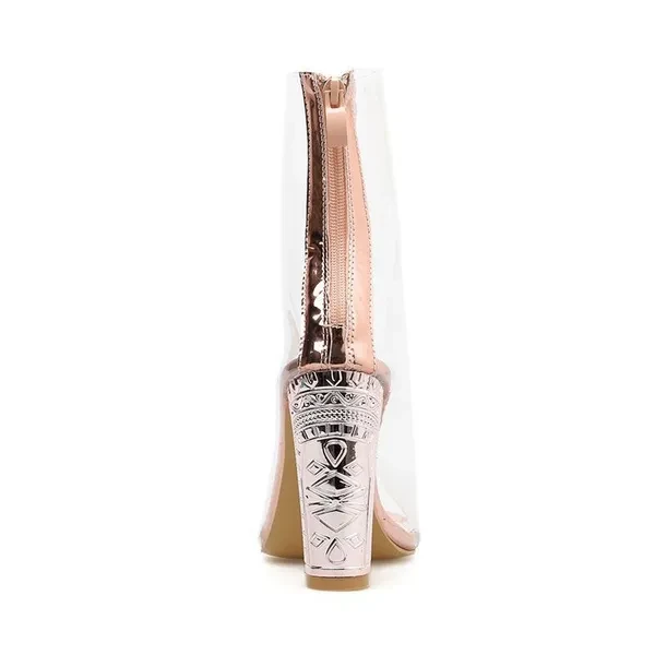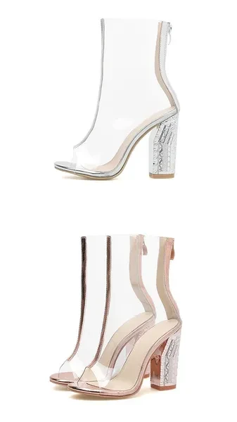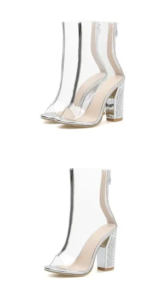 Women's Open Toe Transparent Thick Heel High Heels Short Boots