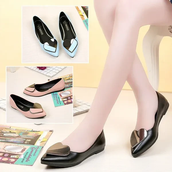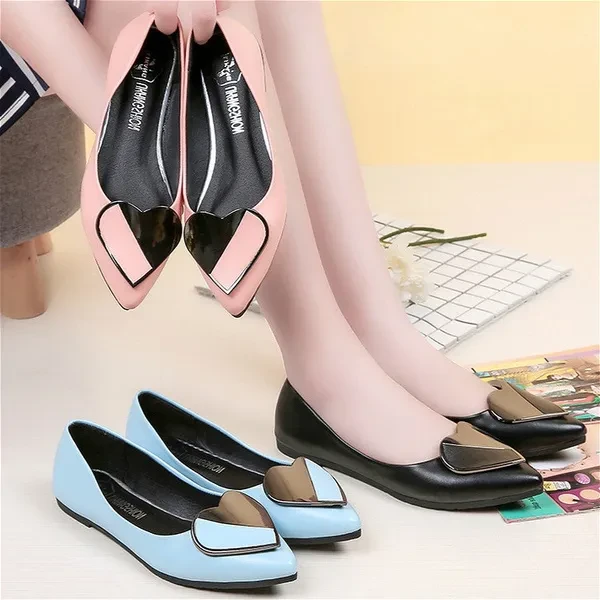 Popular elements: Metal,Shallow mouth Toe shape: Sharp point Heel height : Flat heel pattern: Solid color colour: black,blue,Pink size: 35,36,37,38,39,40 35 EU -- 22.5cm (Foot Length) -- -- 5 US Women 36 EU-- 23cm (Foot Length) -- -- 6US Women 37 EU-- 23.5cm (Foot Length) -- -- 6.5 US Women 38 EU-- 24cm (Foot Length) -- 7.5 US Women 39 EU -- 24.5cm (Foot Length) -- -- 8.5 US Women 40 EU-- 25cm (Foot Length) -- -- 9 US Women Upper height: Low Gang Heel shape: Flat heel Sole technology: Viscose shoes How to dress: Sleeve/Overshoes function: ventilation Depth of opening: Shallow mouth(7cmBelow) Product category: Doug shoes